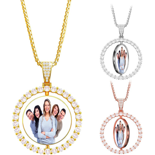 Custom Photo Necklace,Hip Hop Photo Pendant,Personalized Iced Out Round Picture Necklace,Memorial Necklace,Gift for Him/Her -