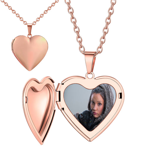 Heart Locket Necklace for Women Plated Holds Pictures Layered Necklaces Heart Pedant Photo Lockets Birthday Gifts -